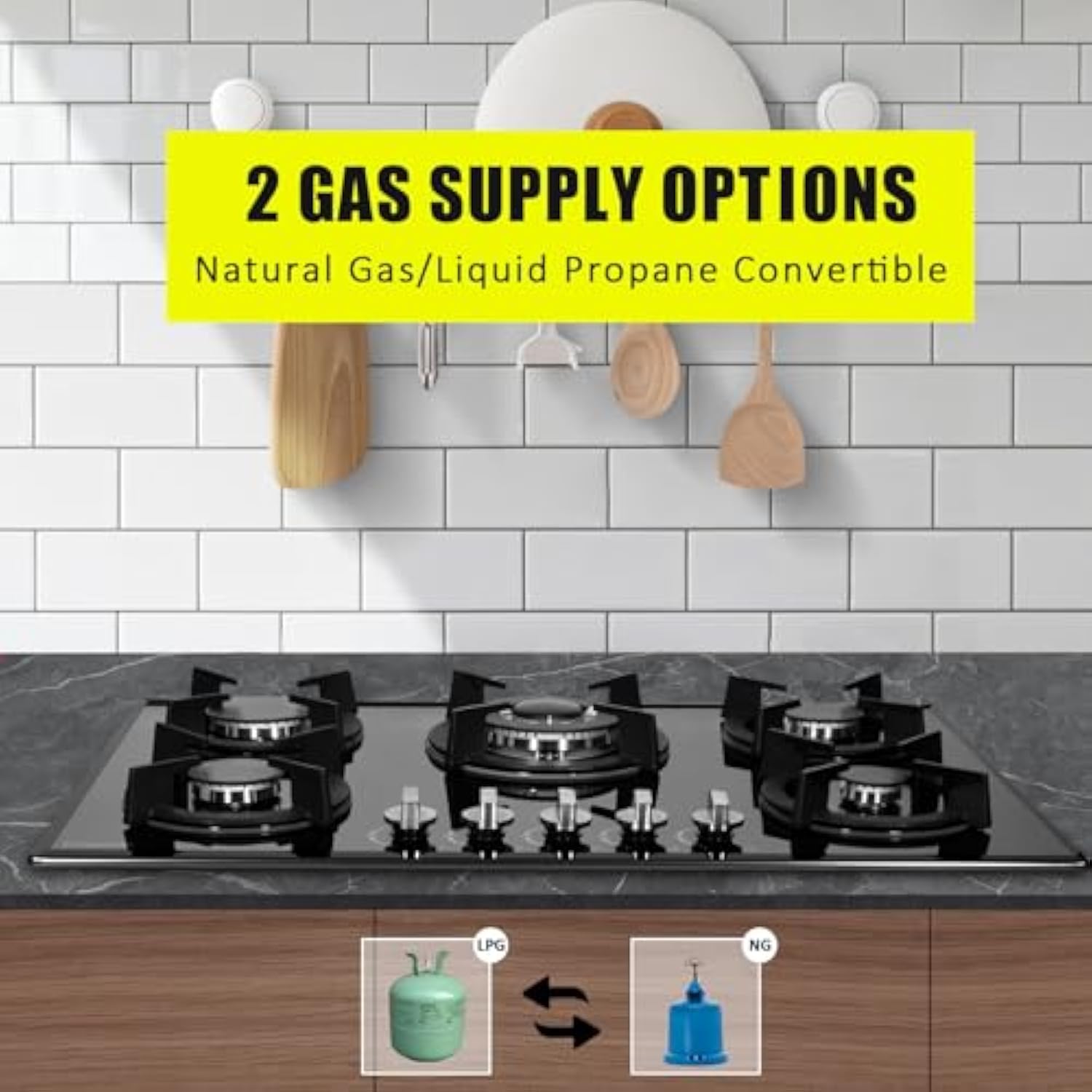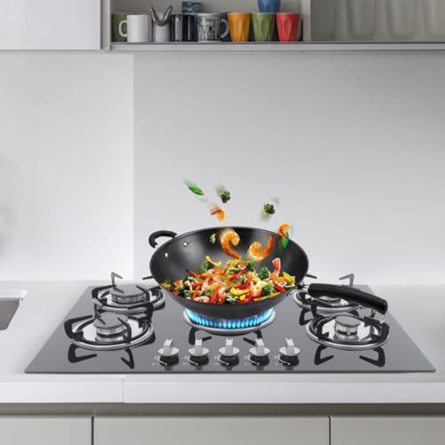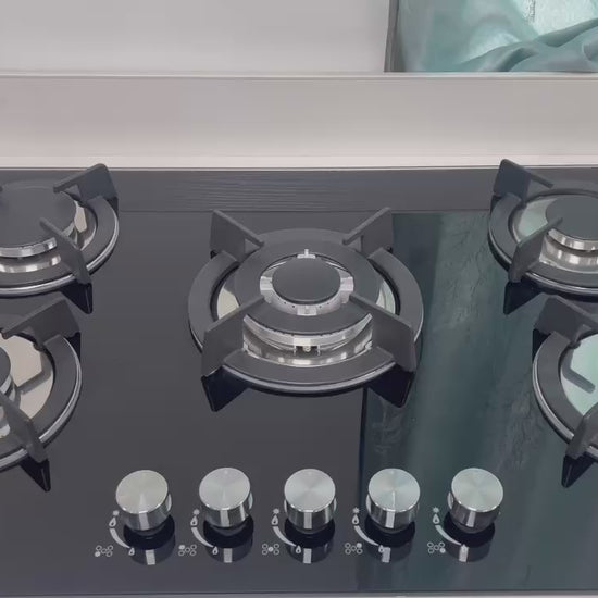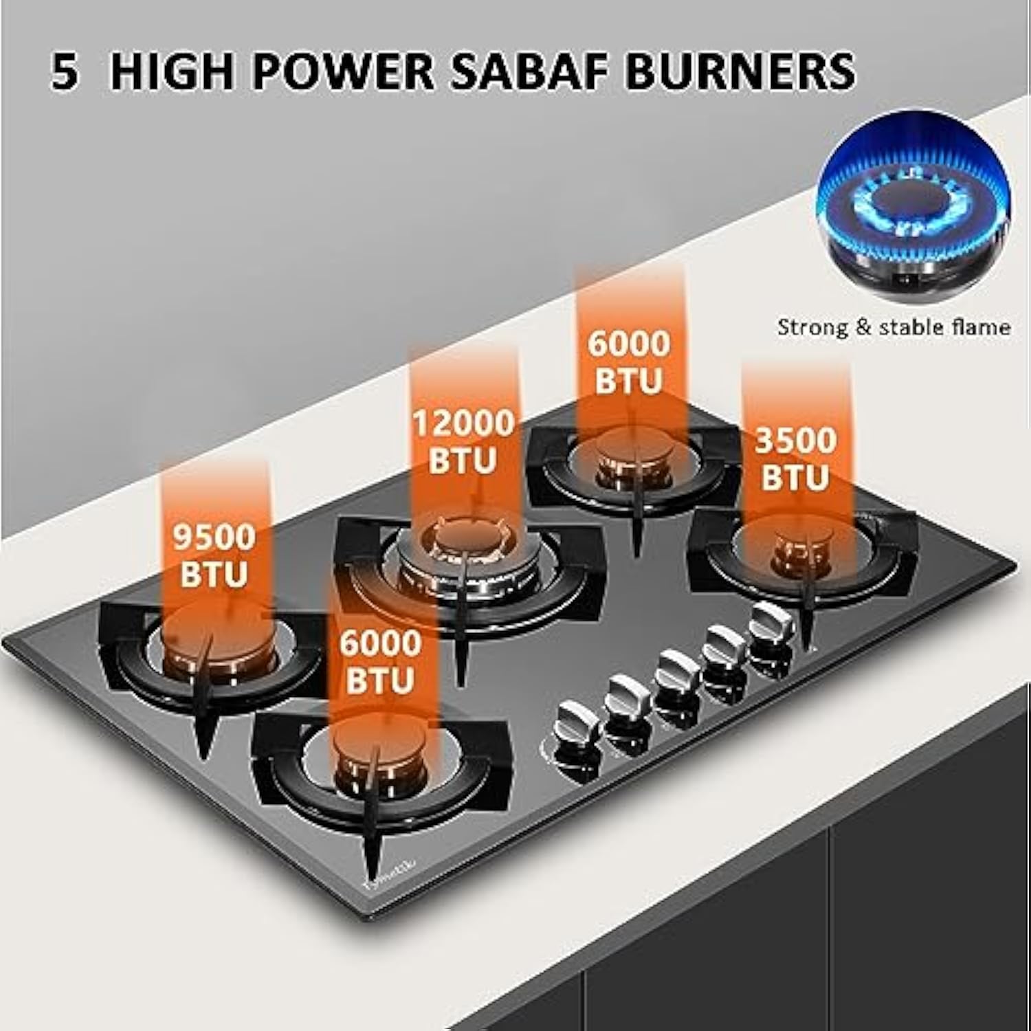 ESTUFA DE GAS CON TABLERO DE VIDRIO - Fabricada con una superficie de vidrio templado negro de 8 mm de grosor, esta estufa de gas de 30 pulgadas ofrece una apariencia elegante y contemporánea, fácil de limpiar. El diseño de una sola pieza sin costuras evita que los derrames lleguen al interior, garantizando un mantenimiento sin complicaciones.